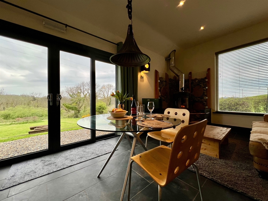 A characterful Dutch barn conversion sleeping up to 8 guests across 4 spacious bedrooms. With vaulted ceilings, a large social kitchen, a cosy lounge, and sweeping views across the woodland valley, the Eco Barn provides a comfortable and atmospheric base for small groups or families.
